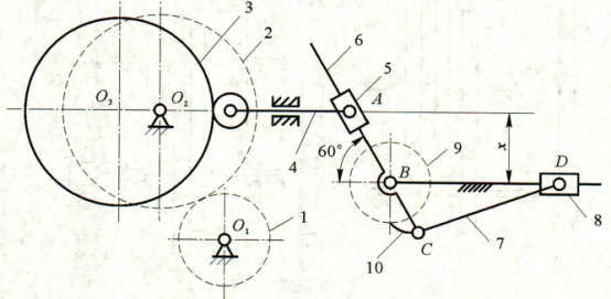 (5)图示位置,件4的压力角为(),滑块D的最大压力角为()。
