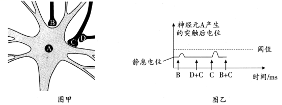 (3)若同时给予神经元B和C一个刺激,请在图乙中画出神经元A膜电位变化。