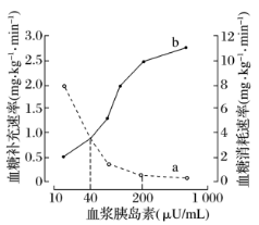 C当胰岛素浓度为40μU·mL-1时,在较长时间内血糖浓度会维持相对稳定