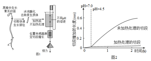 (2)如图1所示,研究者通过冰冻融化去除下胚轴切段中的原生质体仅剩细胞壁,经这种处理后的下胚轴切段称为Y。由图1可知,对Y进行的实验处理为 。